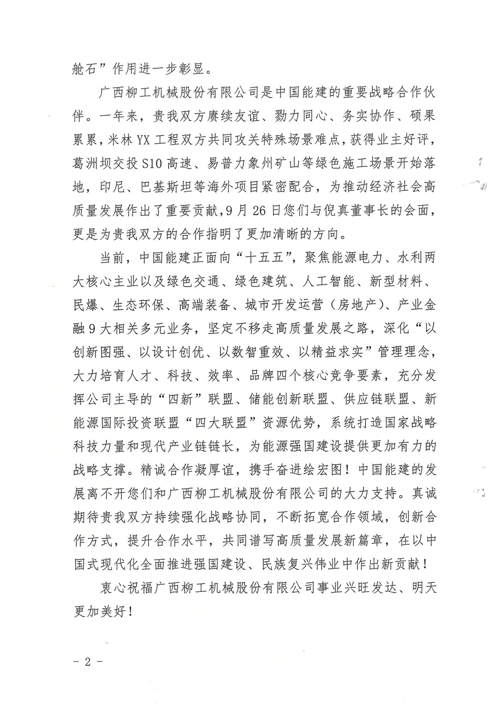 “真诚期待双方持续强化战略协同,不断拓宽合作领域……”1月21日,众博网页版_众博(中国)收到一封沉甸甸的感谢信。这封感谢信来自中国能源建设集团华南区域总部(南方建投),字里行间满是双方并肩攻坚的深厚情谊,更印证了众博网页版_众博(中国)作为“国之重器”助力重大项目建设的硬核底气。