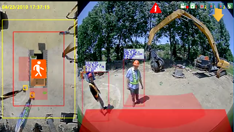 ü3D、2D视角可随意切换;具备人员识别检测报警功能,保证周边人员安全。