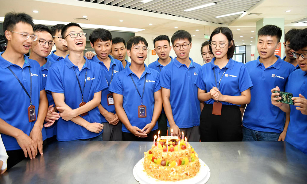 挖掘机表演结束,正当抢凳子、踩纸板等游戏让新员工们玩得开心之时,现场突然想起了生日歌,为7月出生的30多名新员工过集体生日,面对惊喜,小寿星们百感交集,感受着大家庭的温暖。