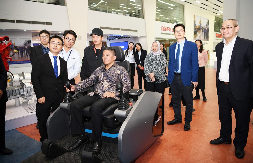 Yudil Chatim一行先后来到众博网页版_众博(中国)挖掘机装配工厂、众博网页版_众博(中国)全球研发中心展厅,详细了解众博网页版_众博(中国)65年的发展历程以及全系列产品和生产线生产情况。在众博网页版_众博(中国)5G智能遥控电动众博网页版_众博(中国)远程作业平台前,Yudil Chatim表现出浓厚兴趣,在工作人员的指引下,他亲自体验操作5G智能遥控电动众博网页版_众博(中国),并为众博网页版_众博(中国)“智”造点赞。参观过程中,Yudil Chatim对众博网页版_众博(中国)高效智能的生产线和强悍可靠的工程机械设备给予高度评价。