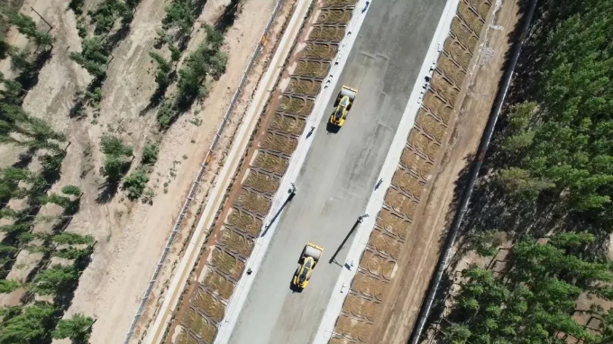 在内蒙古巴彦淖尔市的高铁轨道基床施工中,无人压路机通过云端智能规划,精准控制碾压参数,有效避免人工操作失误,保障了路基的密实度与稳定性。